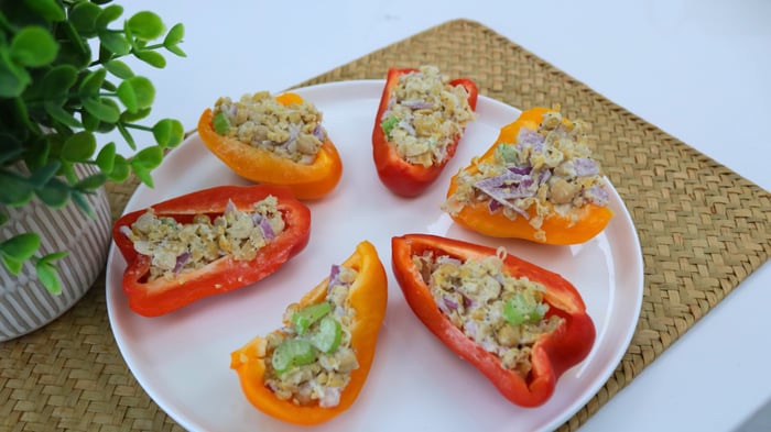 - Spoon chickpea salad into the pepper cups and serve.