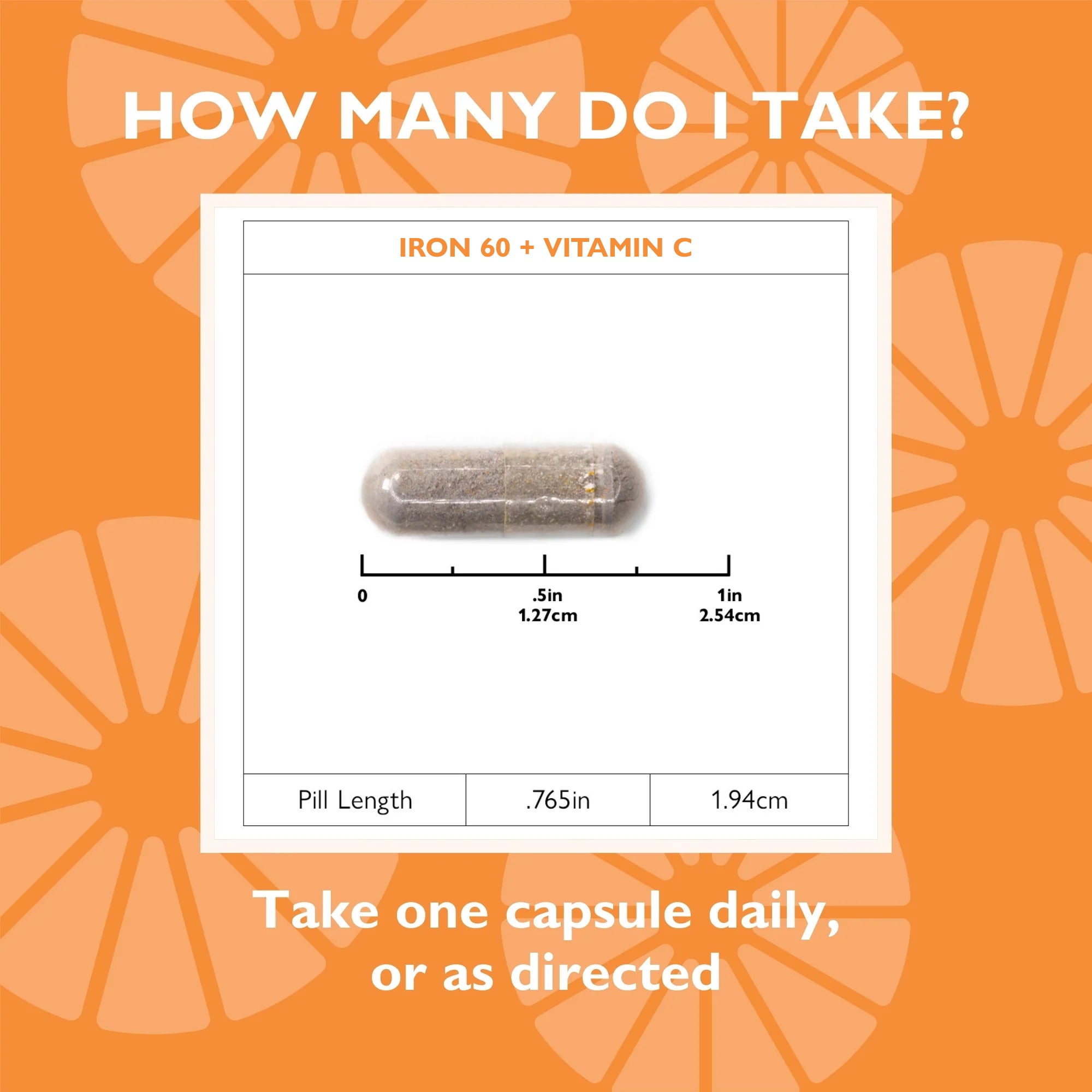 - 60 mg vitamin C significantly improves iron absorption by the body, maximizing each dose